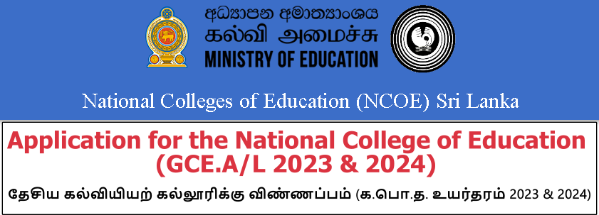 College of Education Teacher Training Programme – Application for the National College of Education (GCE.A/L 2023 & 2024)