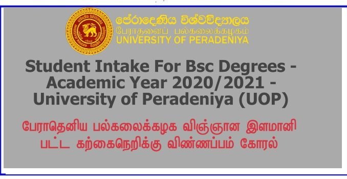 University admissions For Bsc Degree Under Special Intake – University of peradeniya 2021