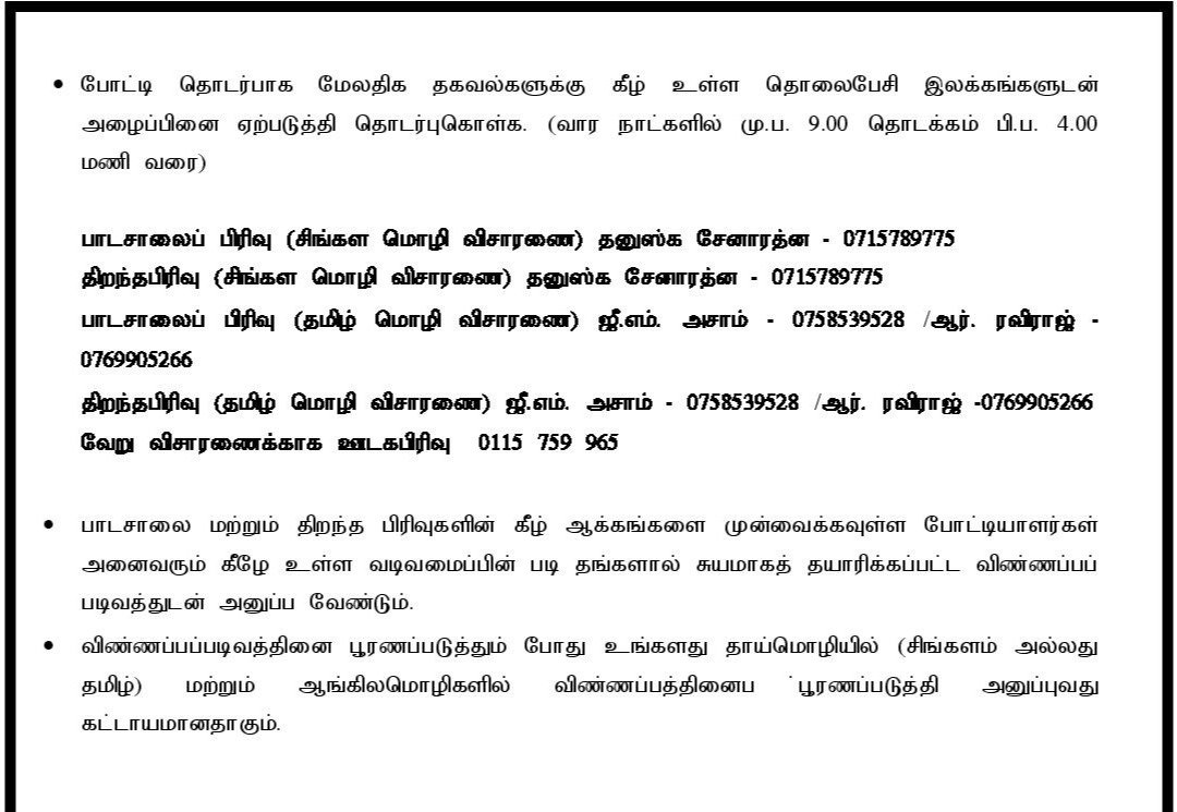 Deadline for the submission is 31st May 2024–விண்ணப்ப முடிவு திகதி 31 மே 2024 வரை நீடிக்கப்பட்டு உள்ளது