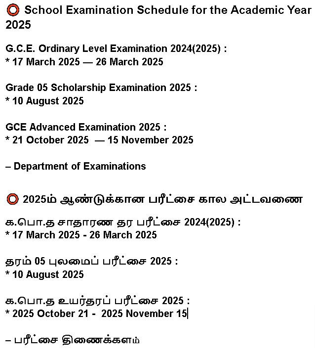 2025 Examination schedule-department of examinations February 9, 2025 ceylonvacancy APPLICATION 0 2025 Examination schedule-department of examinations