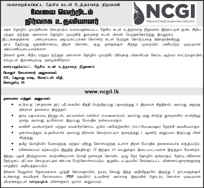 Administrative Assistant – National Credit Guarantee Institution Limited Vacancies 2025