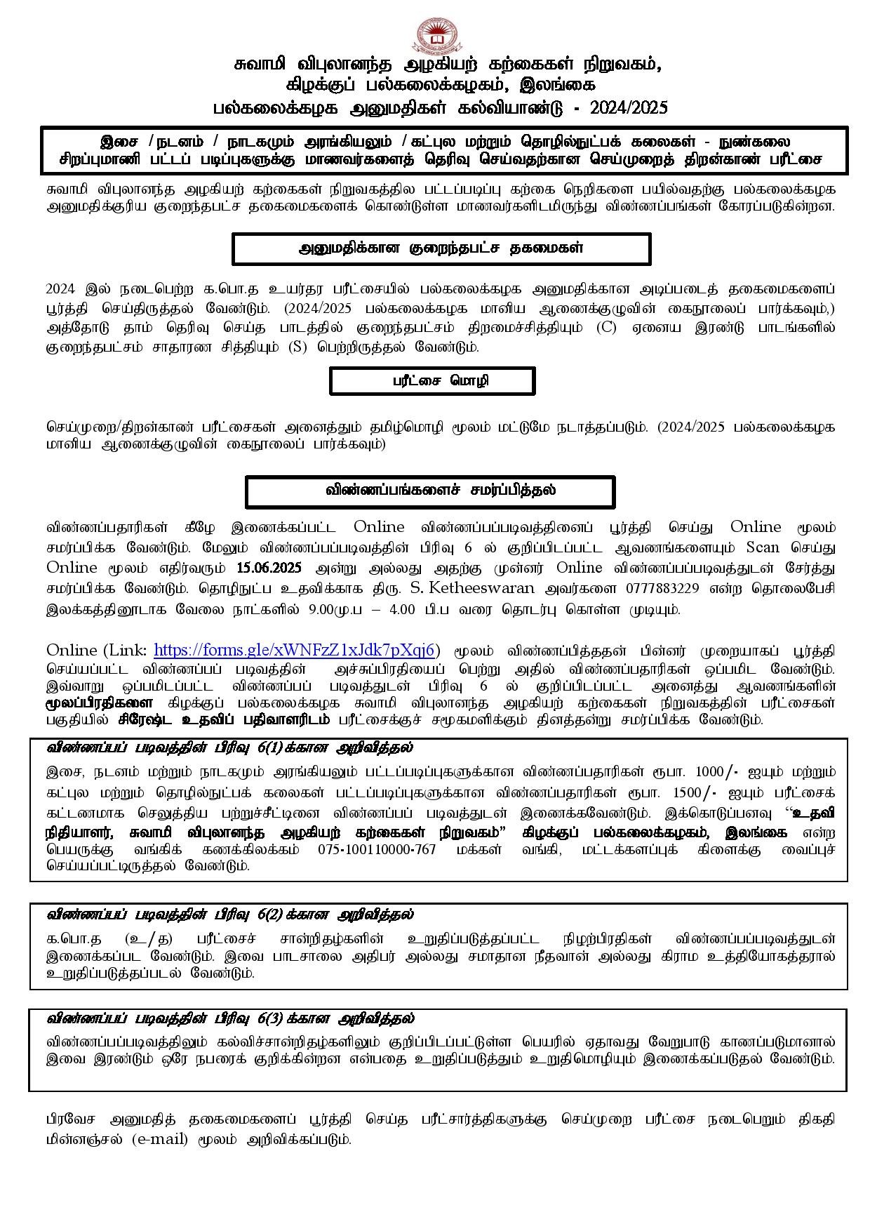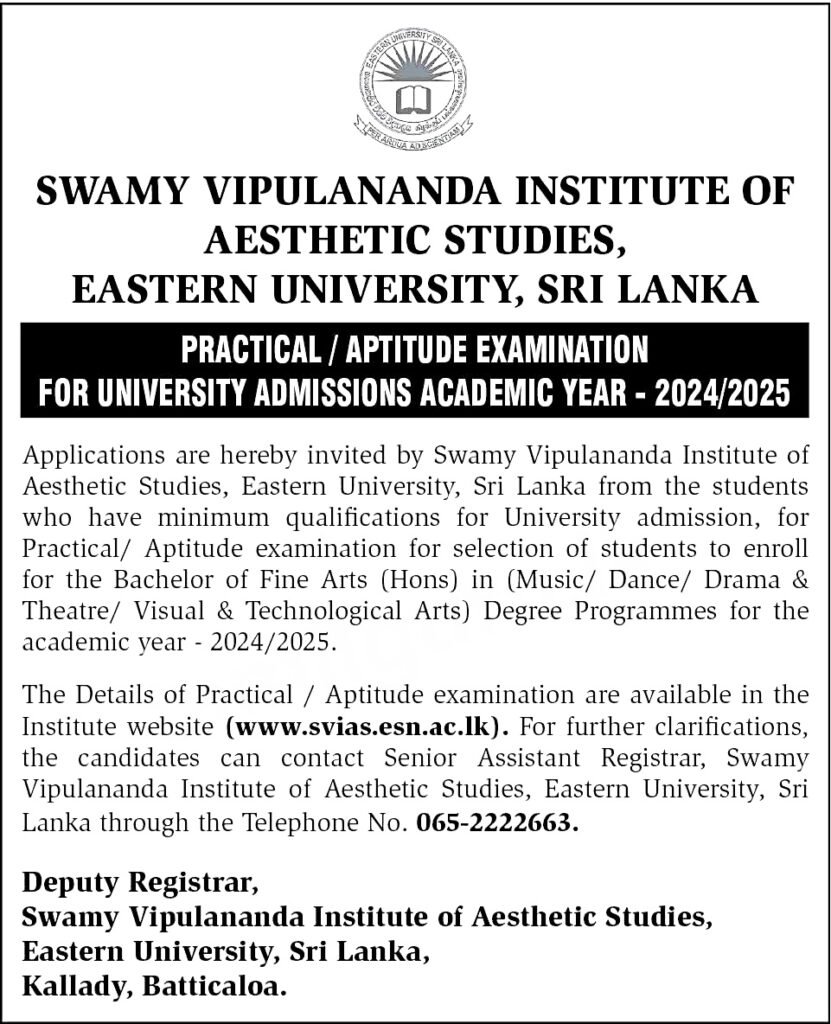 Aptitude Test Application 2025 -Eastern University (Swami Vipulananda Institute)