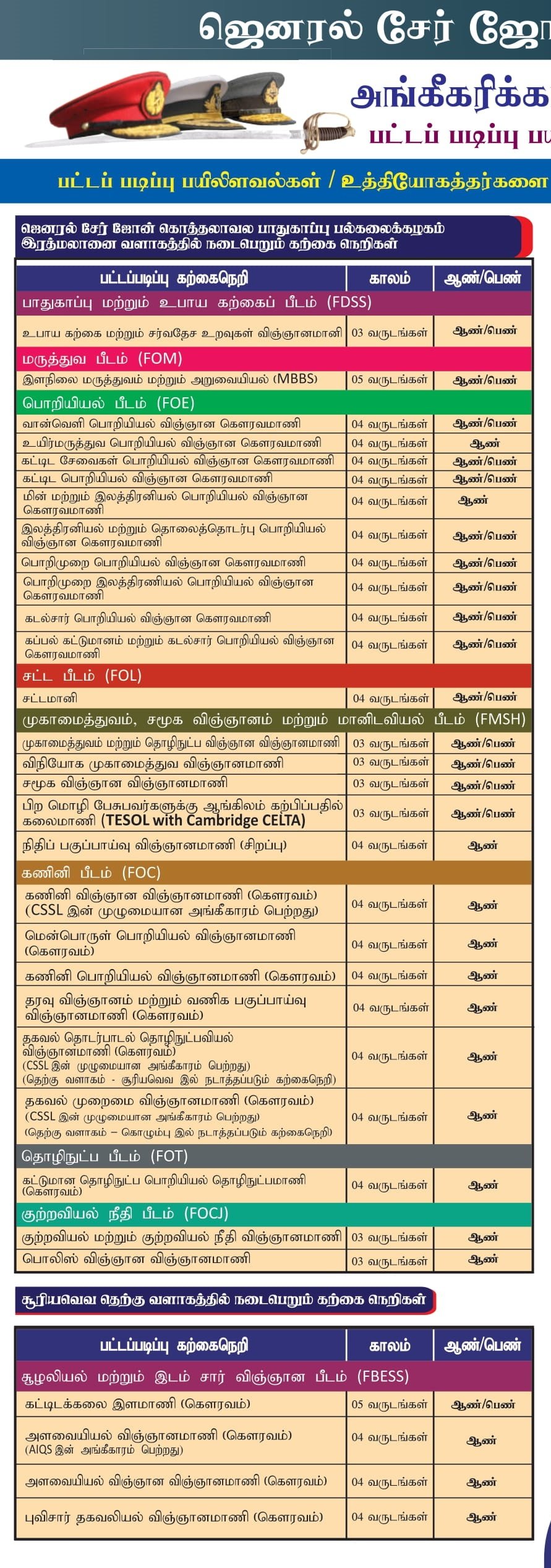 Calling Applications for Undergraduate Programmes for Officer Cadets 2025/2026 – KDU