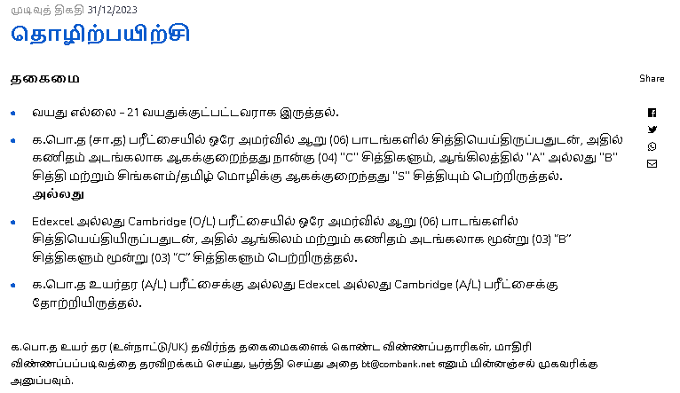 Commercial Bank vacancies 2023-Internship programme 2023 January 12, 2023 ceylonvacancy APPLICATION 0 Commercial Bank vacancies 2023-Internship programme 2023 ONLINE APPLICATION Bank jobsbank jobs in srilanka