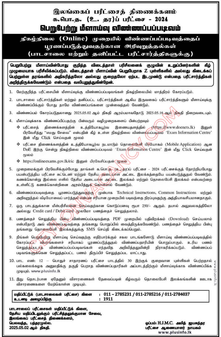 GCE AL RECORRECTION 2025 APPLICATION May 2, 2025 ceylonvacancy APPLICATION 0 GCE AL RECORRECTION 2023(2024) APPLICATION ONLINE APPLY(CLICK HERE) Open Again From: 28.05.2025-30.05.2025 Technical instructiondownload பல்கலைக்கழக அனுமதி வழிகாட்டல் குழுவில் இணைய-JOIN