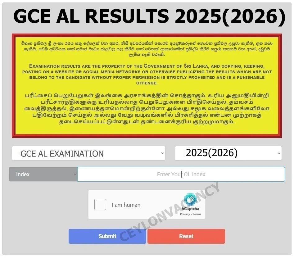 GCE AL Examination Results Released -Update Online Doenets 2025(2026)