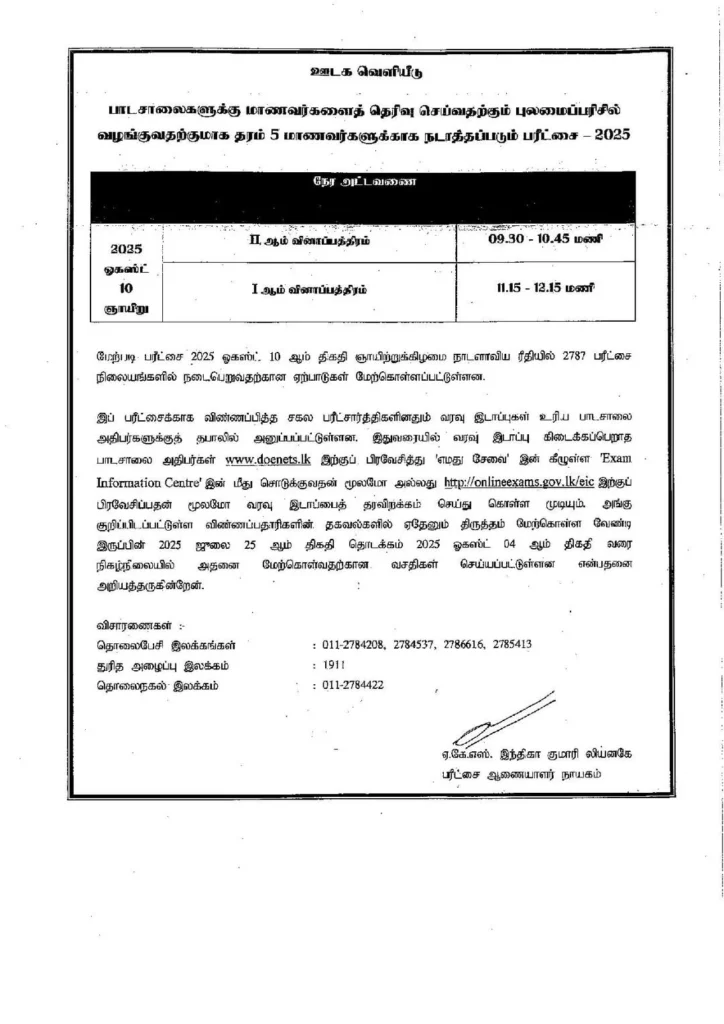 📝 தரம் 5 புலமைப்பரிசில் பரீட்சை – 2025