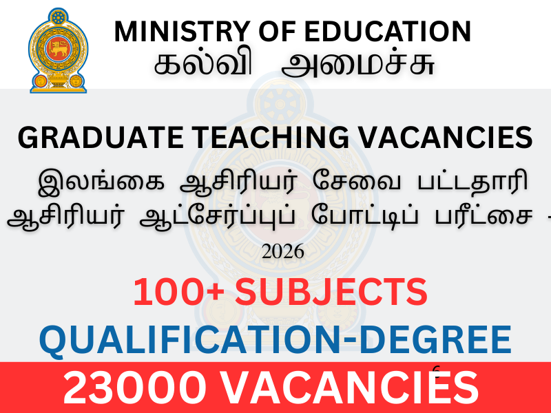 05. கல்வித் தகுதிகள்:5.1.2 பட்டப்படிப்பில் பயின்ற பிரதான பாடம்/பாடங்களுக்கு ஏற்பவே உரிய ஆசிரியர் வெற்றிடங்களுக்கு விண்ணப்பிக்க வேண்டும். விண்ணப்பிக்கும் பாடத்திற்குரிய உள்ளடக்கமானது தனது பட்டப்படிப்பின் மொத்தப் பாடப்பரப்பில் 1/3 பகுதியை நிறைவு செய்திருக்க வேண்டும். 5.1.3 கல்விப் பொதுத் தராதர சாதாரண தரப் பரீட்சையில் சிங்கள மொழி அல்லது தமிழ் மொழியை ஒரு பாடமாகக் கொண்டு சித்தியடைந்திருக்க வேண்டும்.
