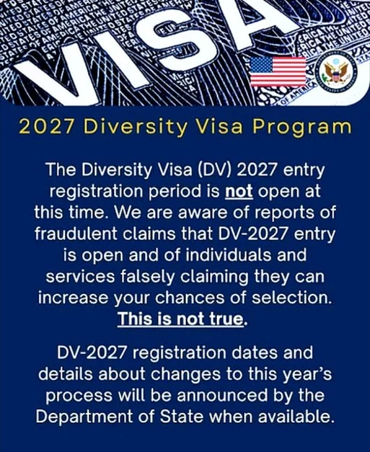 2027-ஆம் ஆண்டிற்கான பன்முகத்தன்மை விசா (DV) பதிவு காலம் தற்போது திறக்கப்படவில்லை.