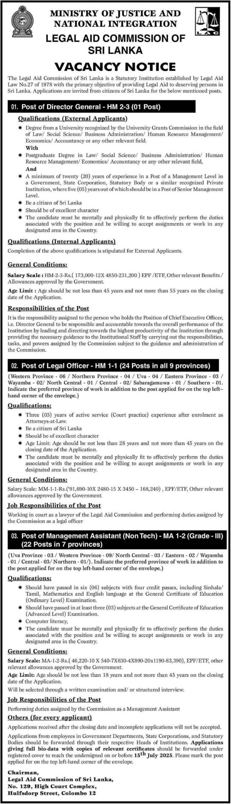 Legal Aid Commission Vacancies 2025 June 27, 2025 ceylonvacancy APPLICATION 0 Legal Aid Commission Vacancies 2025 APPLICATIONDOWNLOADjoin whatsapp groupjoin