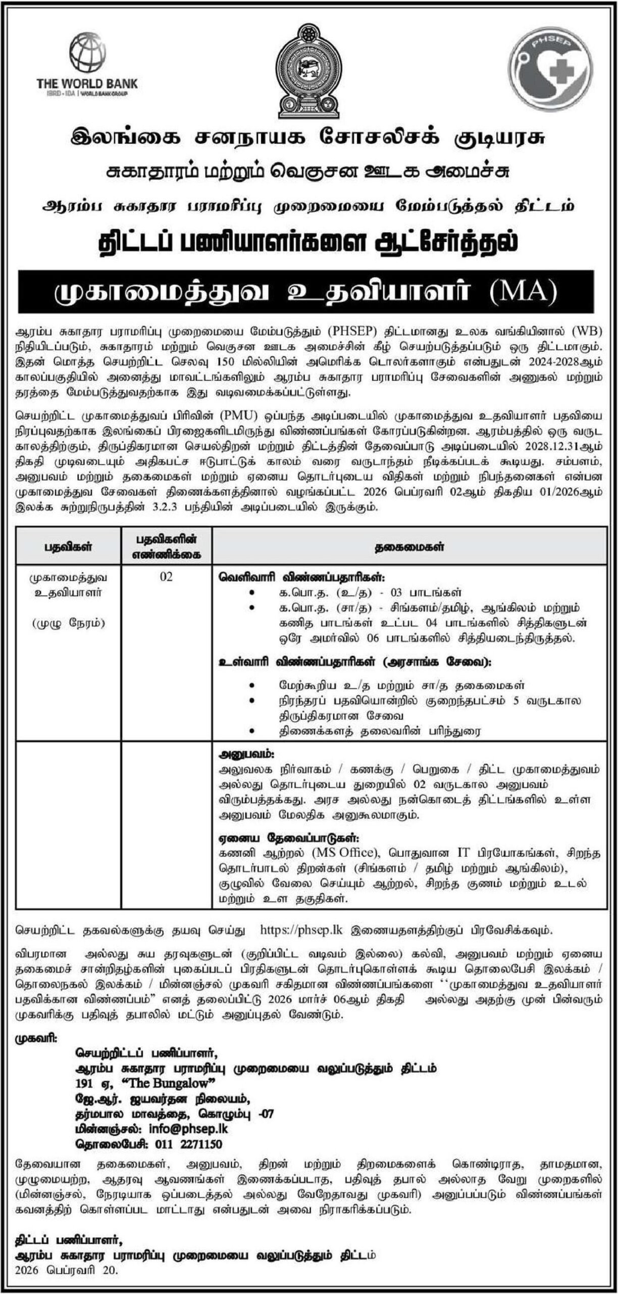 MANAGEMENT ASSISTANT 2026- VACANCY-Health ministry