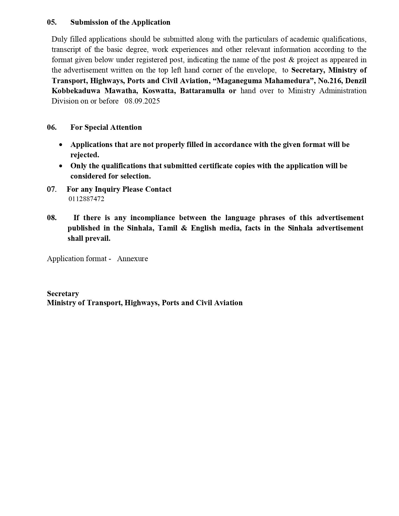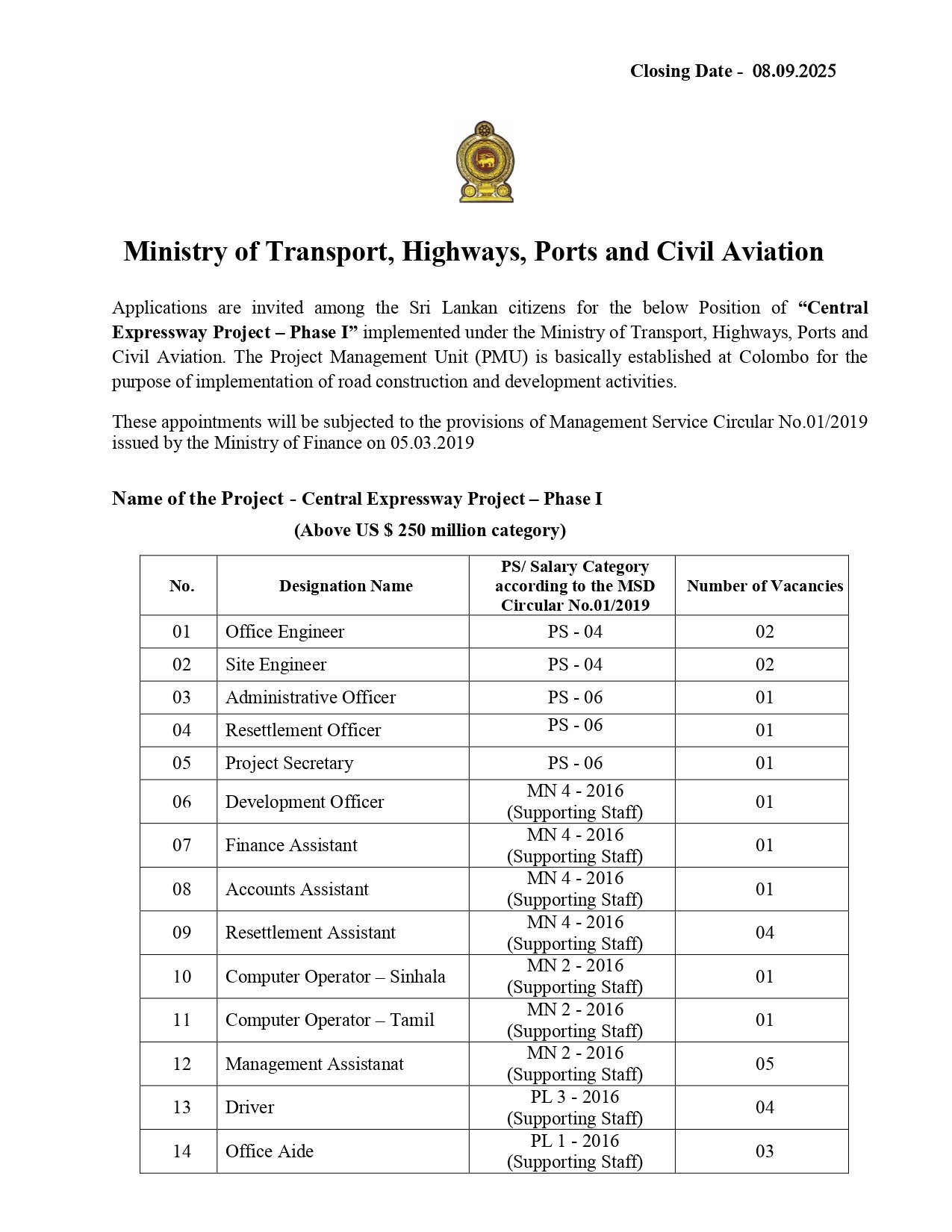 Management Assistant, Developemnt Officer, AO, Driver, Office Assistant – Ministry of Transport, Highways, Ports & Civil Aviation Vacancies 2025 August 28, 2025 ceylonvacancy APPLICATION 0 Management Assistant, Developemnt Officer, AO, Driver, Office Assistant – Ministry of Transport, Highways, Ports & Civil Aviation Vacancies 2025 NOTICE TAMILDOWNLOADAPPLICATIONDOWNLOAD government vacanciesManagement assistantPorts & Civil Aviation Vacancies