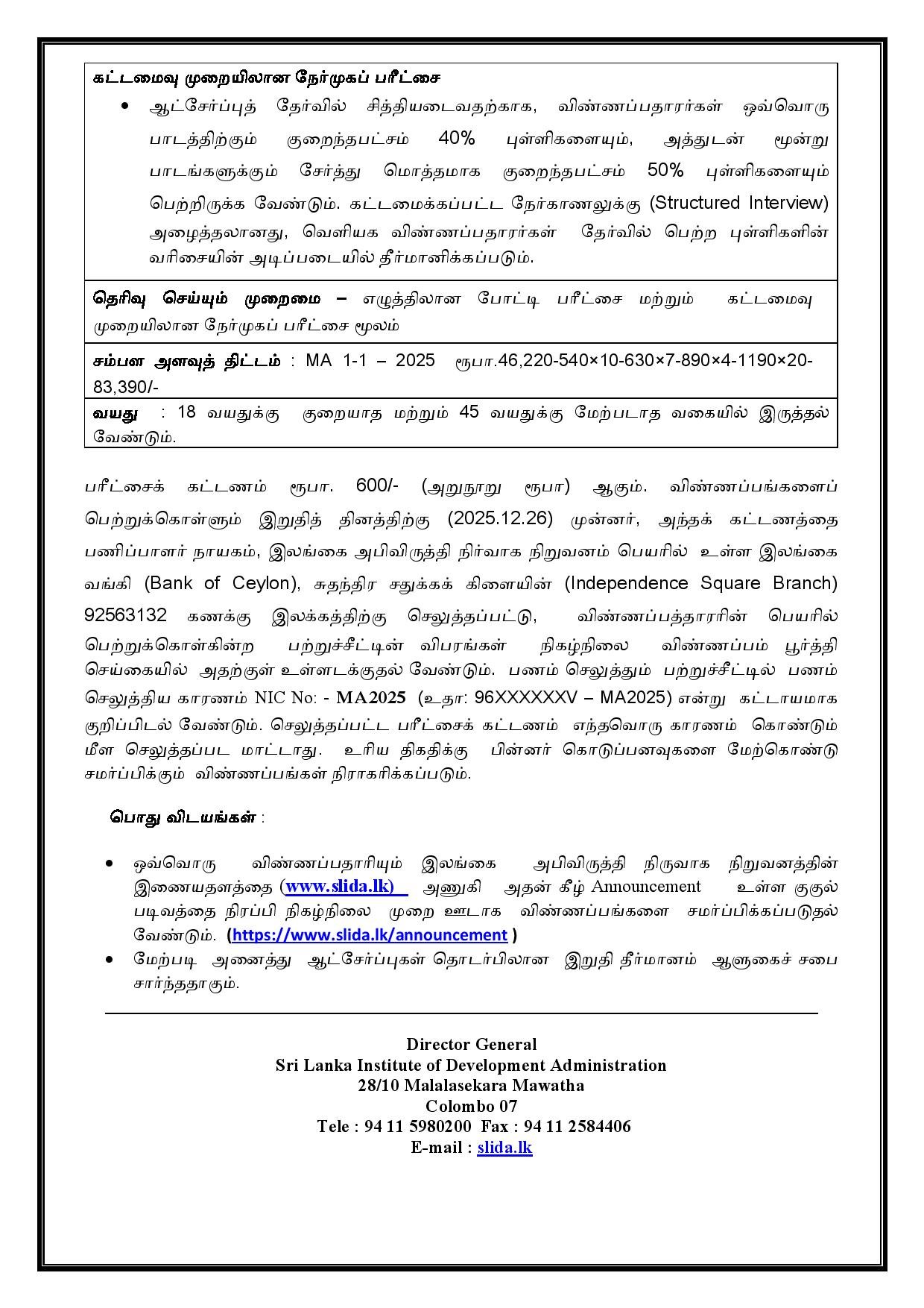 Management Assistant -Sri Lanka Institute of Development Administration Vacancies 2025