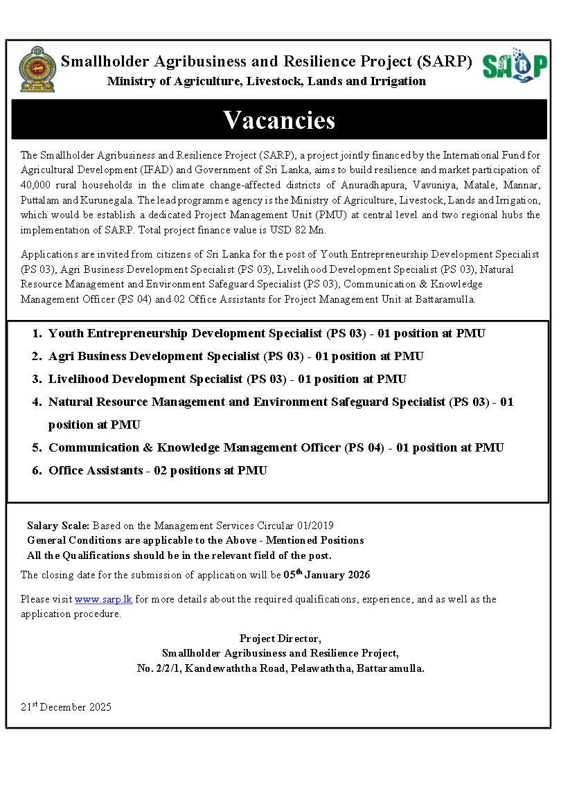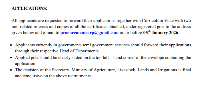MINISTRY OF AGRICULTURE, LIVESTOCK, LANDS AND IRRIGATION vacancies 2026