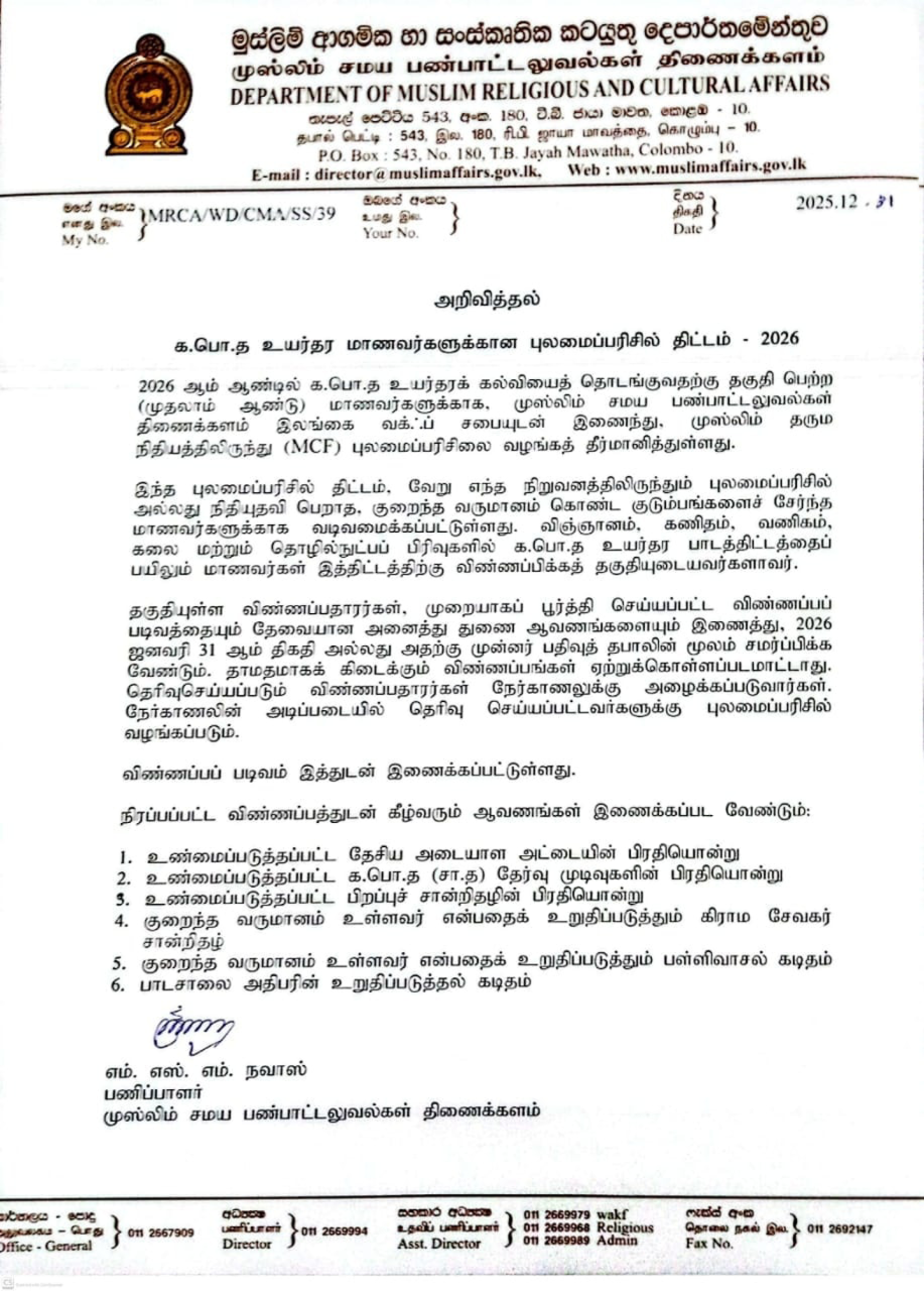 Muslim Charities Fund Scholarships 2026 January 6, 2026 ceylonvacancy APPLICATION 0 Muslim Charities Fund Scholarships 2026 JOIN WHATSAPP GROUPJOIN HEREDOWNLOAD APPLICATIONDOWNLOAD