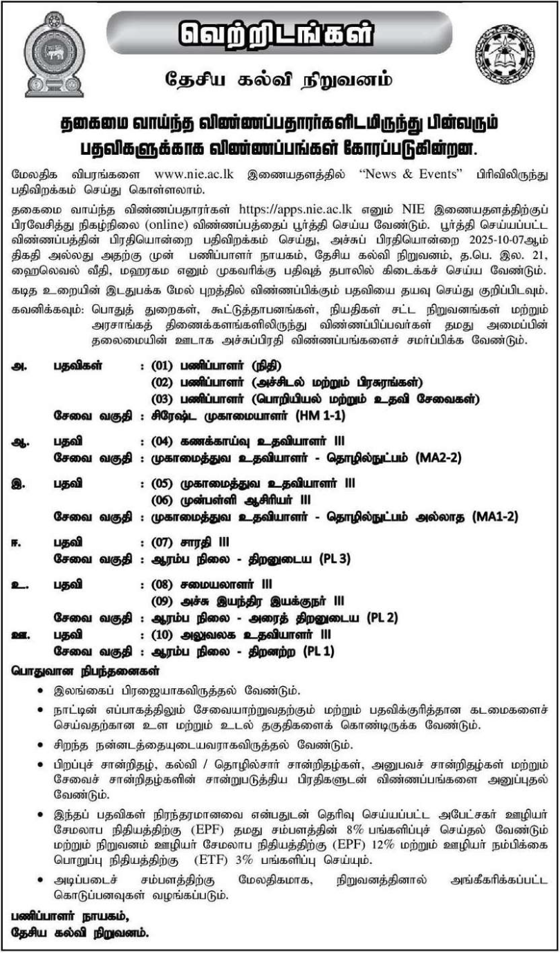 National Institute of Education vacancies 2025 September 25, 2025 ceylonvacancy APPLICATION 0 National Institute of Education vacancies 2025 ONLINE APPLICATIONAPPLY government vacanciesManagement assistant