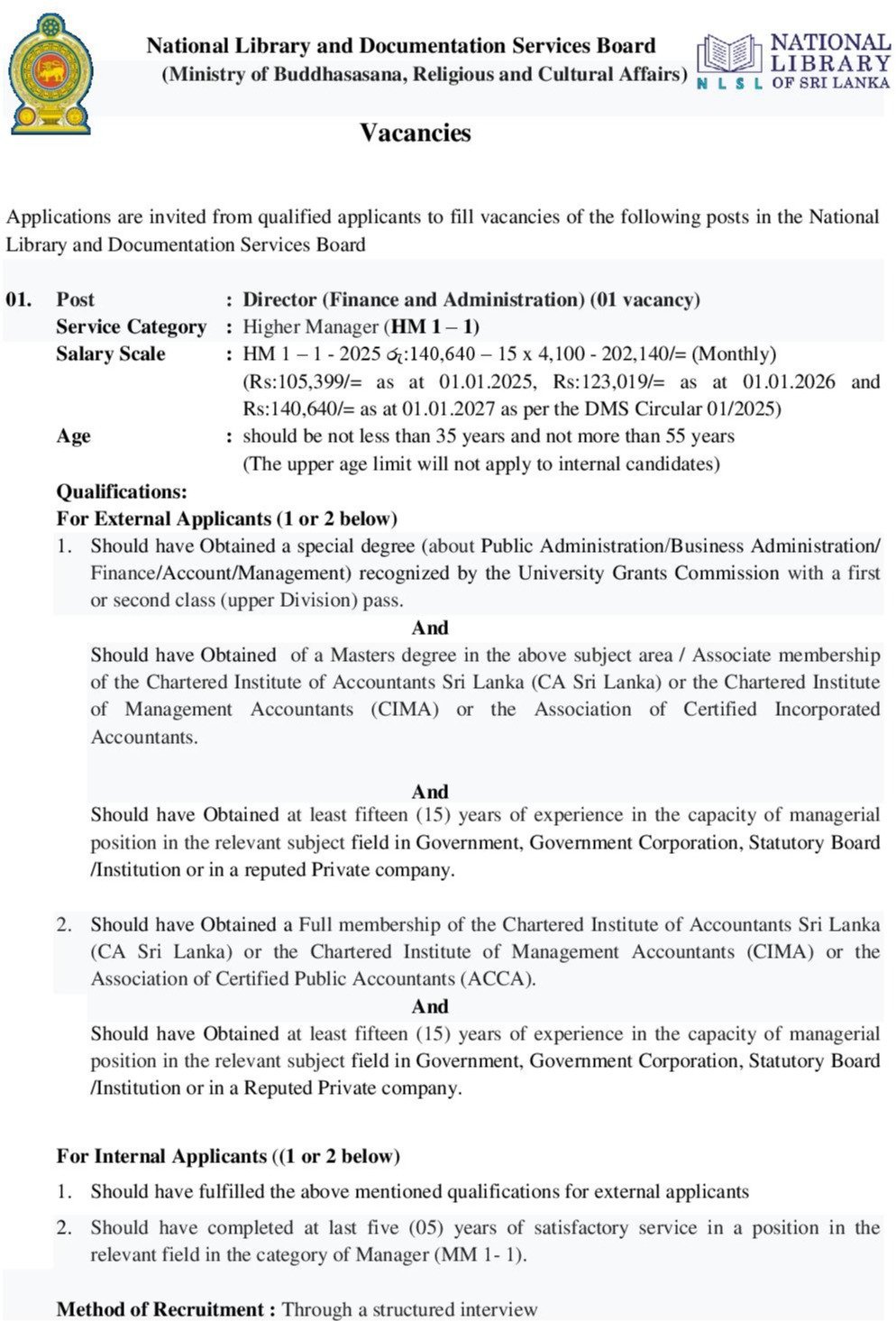 National Library and Documentation Services Board vacancies 2025