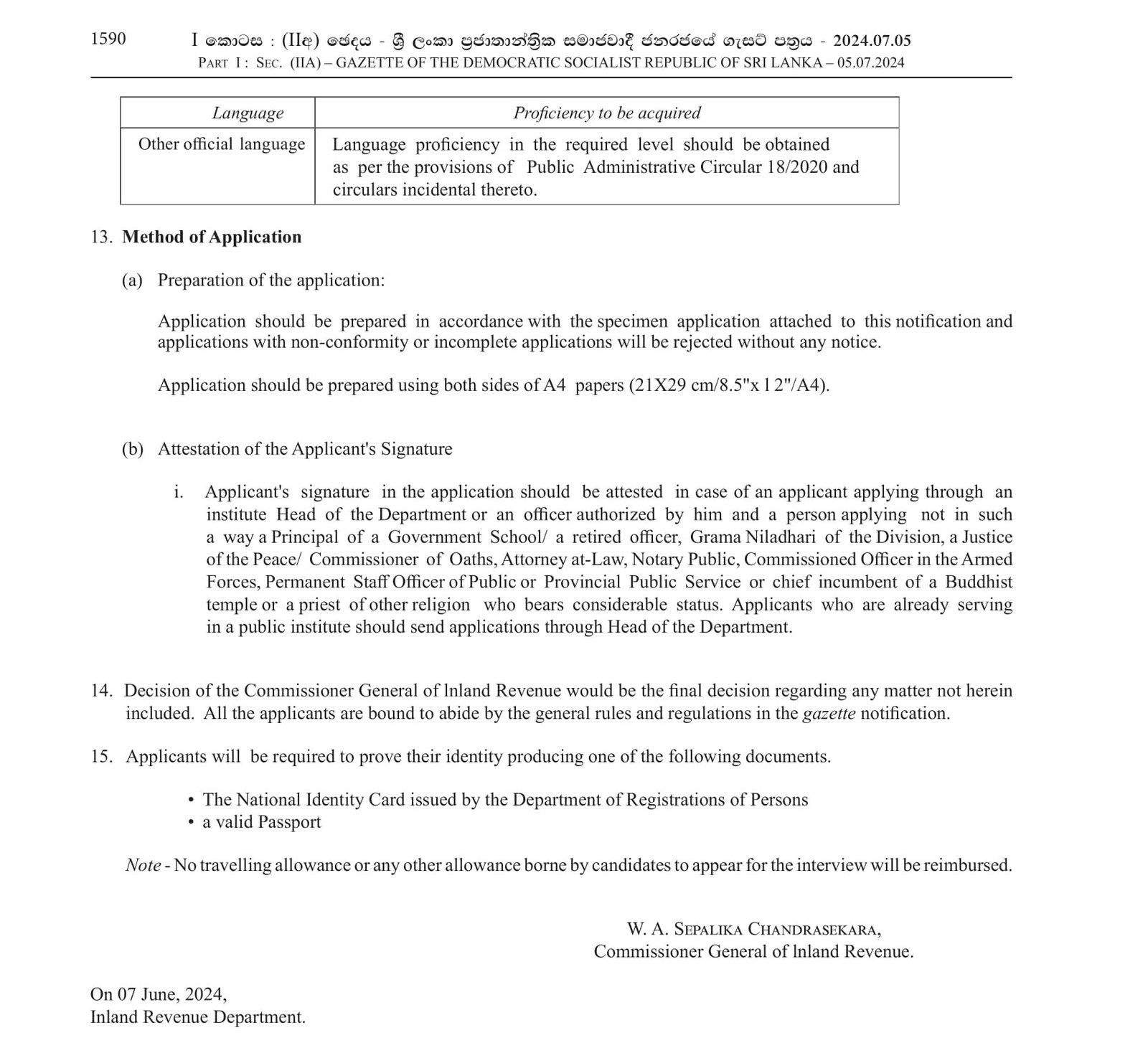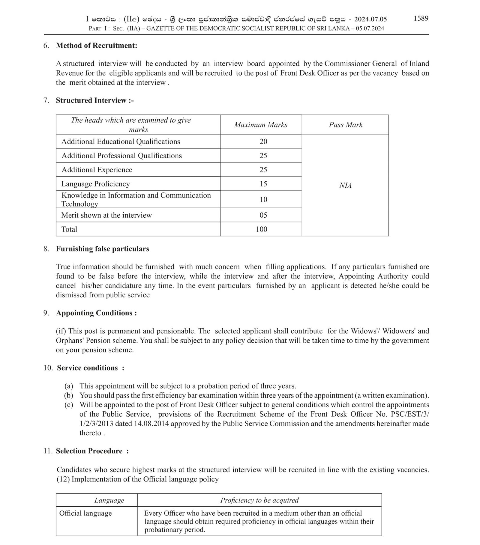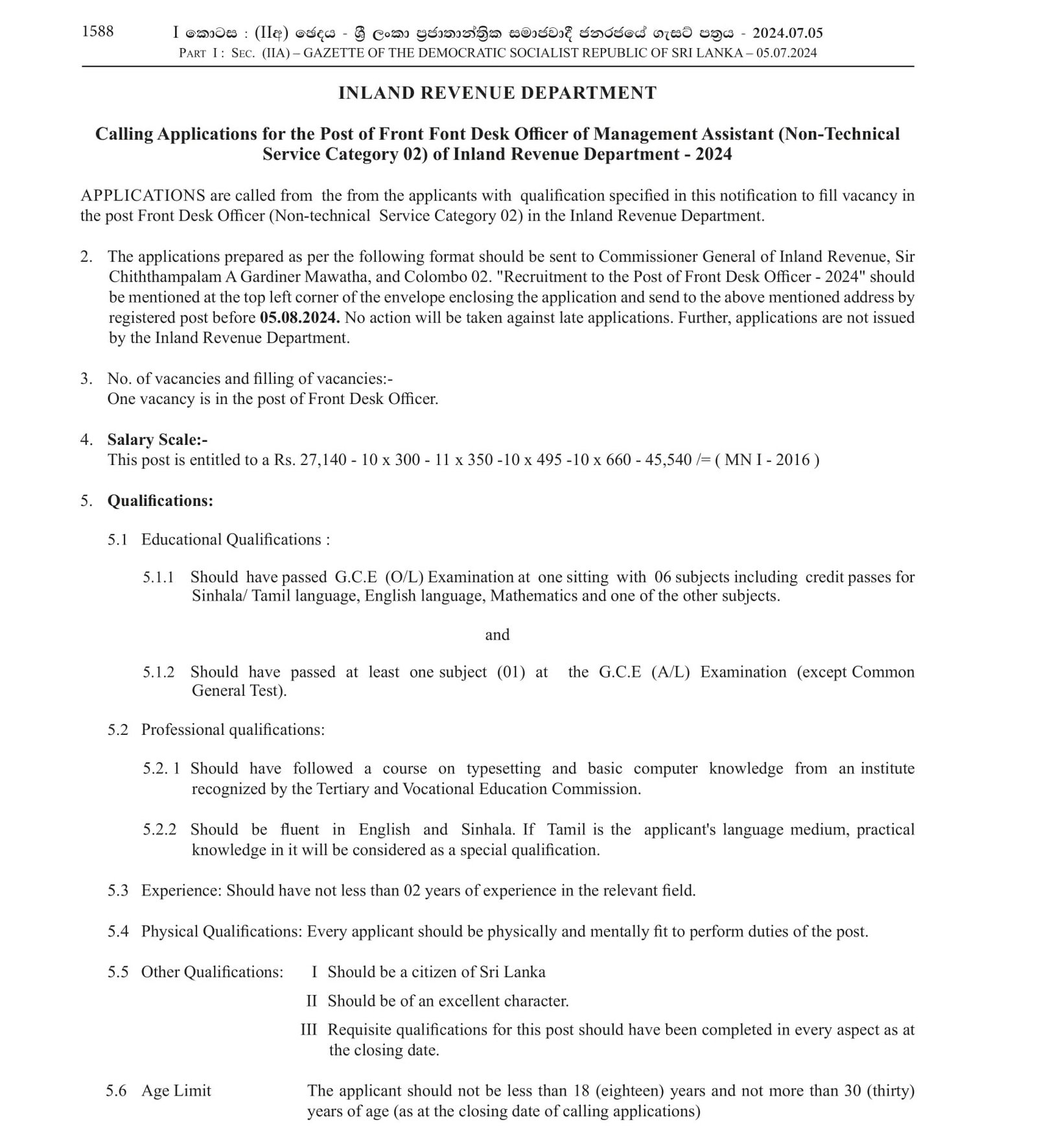 Post of Front Font Desk Officer of Management Assistant of Inland Revenue Department – 2024