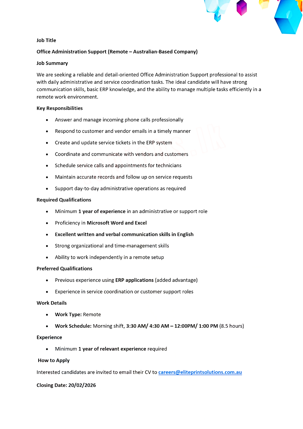 Remote Office support -Work from Home(Australia based) 2025 Vacancies