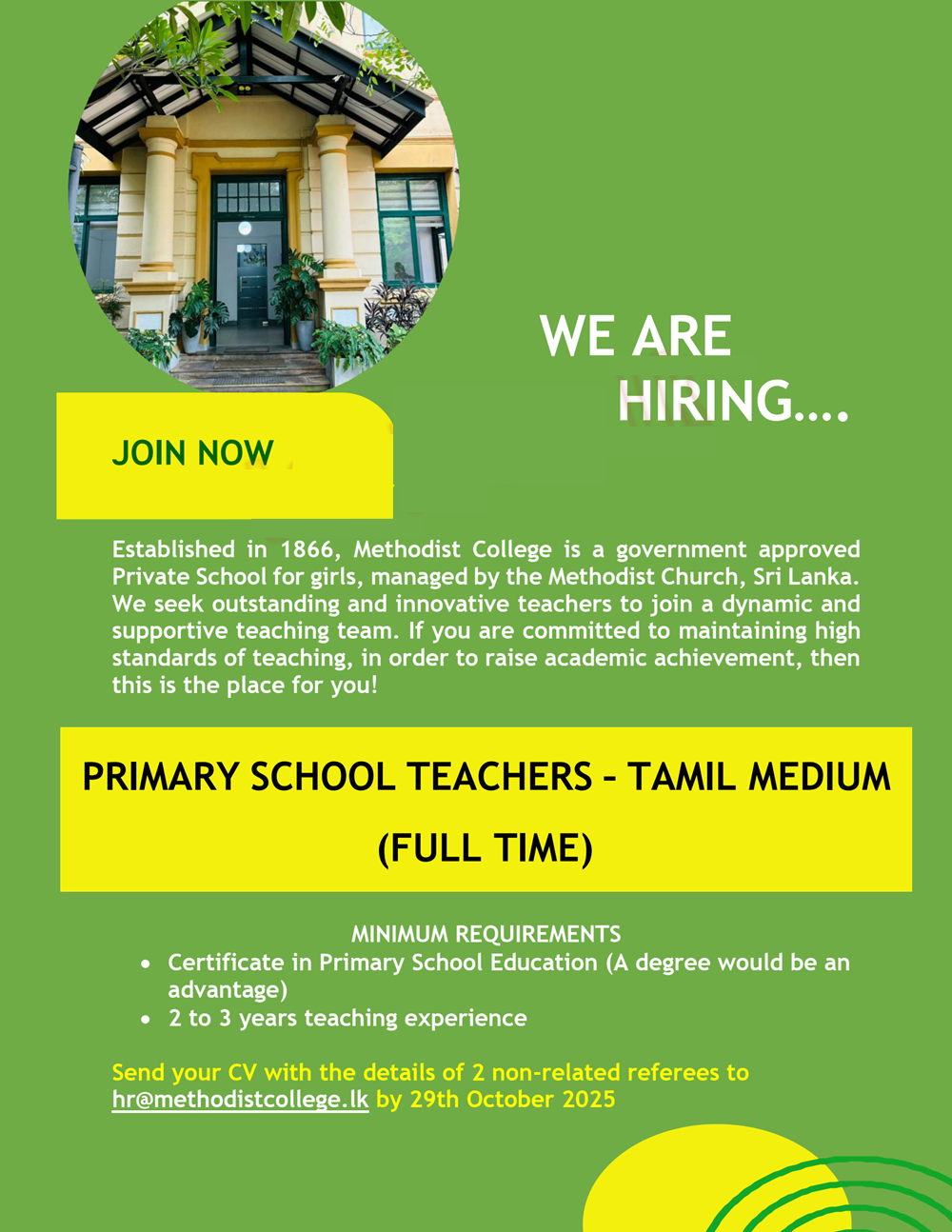 hr@methodistcollege.lk by 29th October 2025