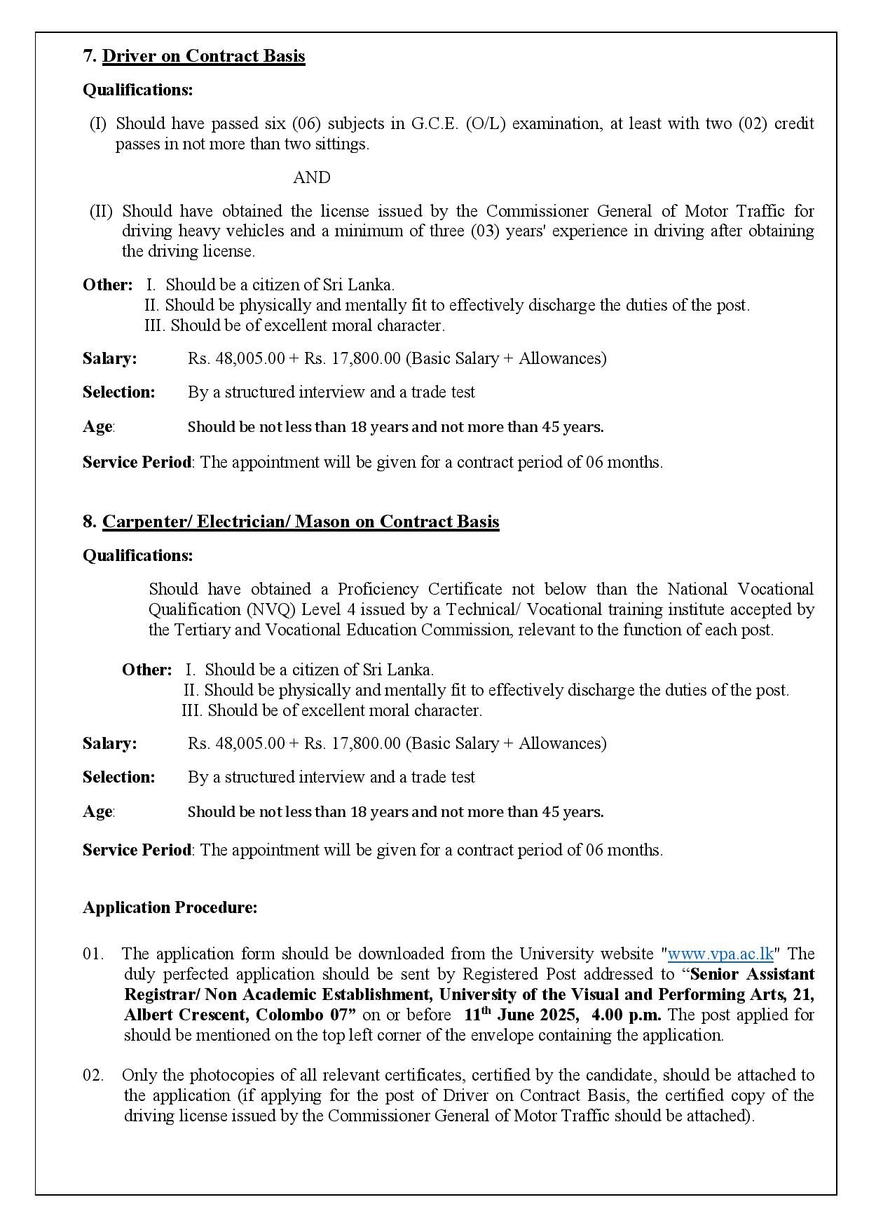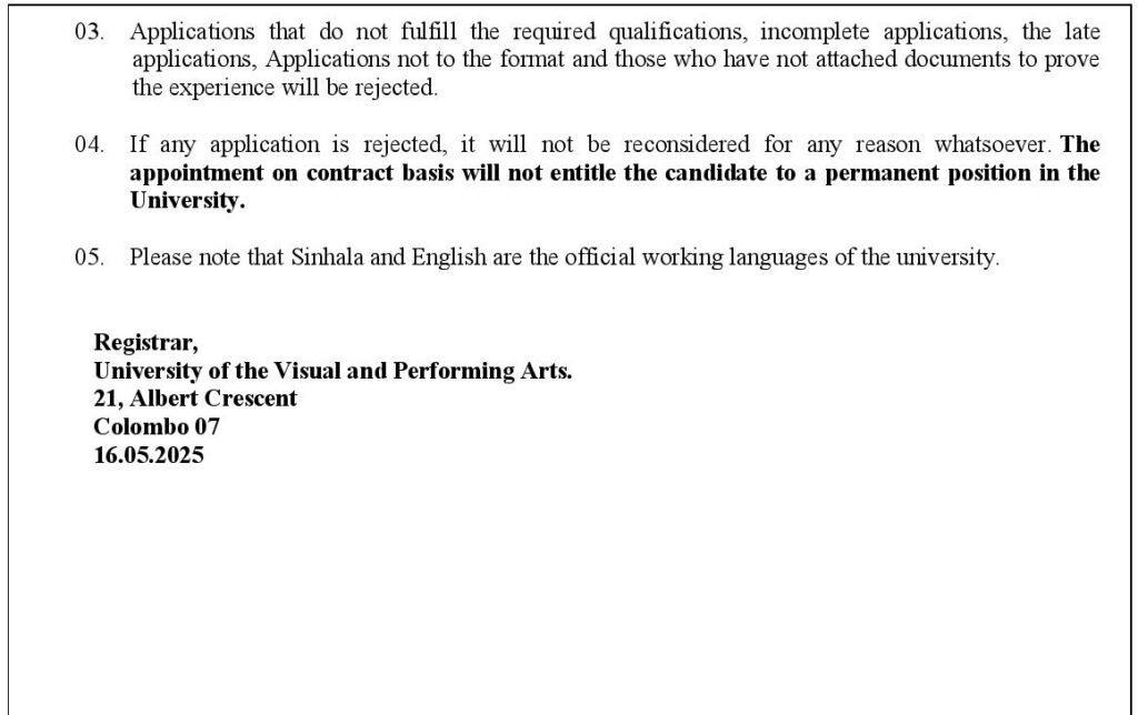 University of the Visual and Performing Arts vacancies