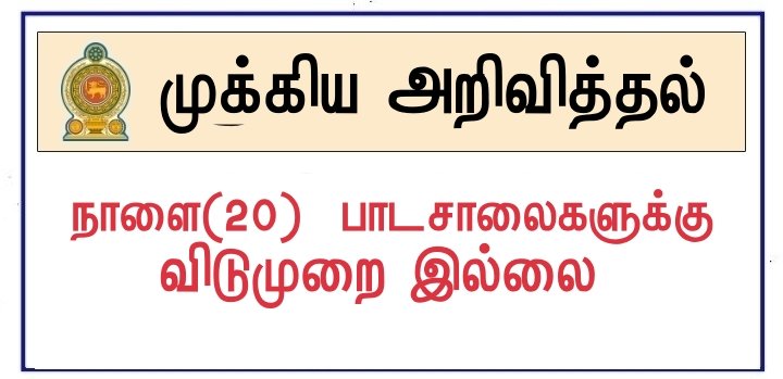 மேல் மாகாண மற்றும் வடமாகாண கல்வித் திணைக்களங்கள் அறிவித்தல் அடிப்படையில் பாடசாலை நடைபெறுவதற்கான சாத்தியங்கள் குறைவு என்பது குறிப்பிடத்தக்கத