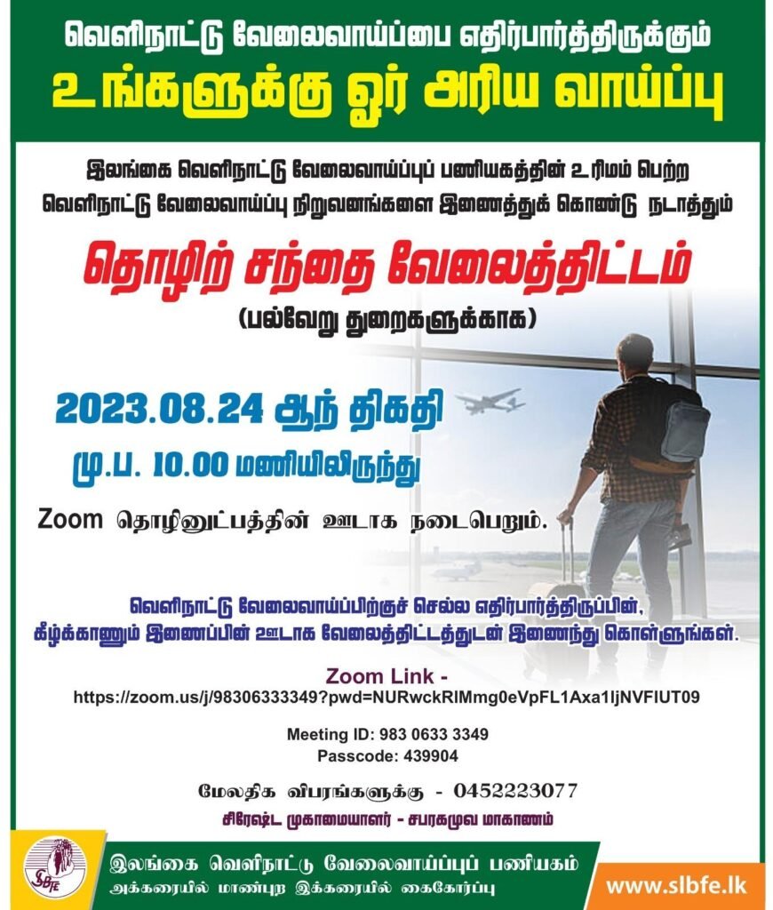virtual Job Fair By Sri Lanka Bureau of Online Foreign Employment 2022
