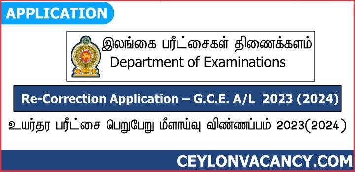 Calling Applications for Re-Correction of Results – G.C.E. A/L Examination 2023 (2024) Conducted by the Department of Examinations