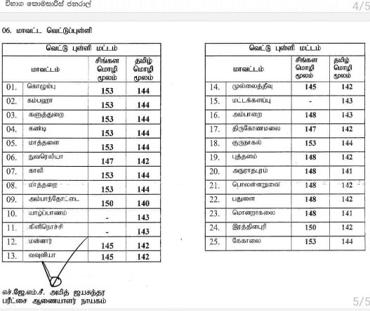 Cut off – Marks – Sinhala