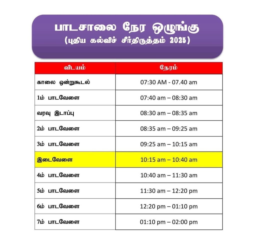 புதிய கல்விச் சீர்திருத்தத்தின் அடிப்படையில் பாடசாலை வகுப்பு நேர ஒழுங்கு அட்டவணை