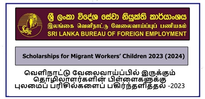 Scholarship for Children of Migrant Workers – Sri Lanka Bureau of Foreign Employment 2023(2024)