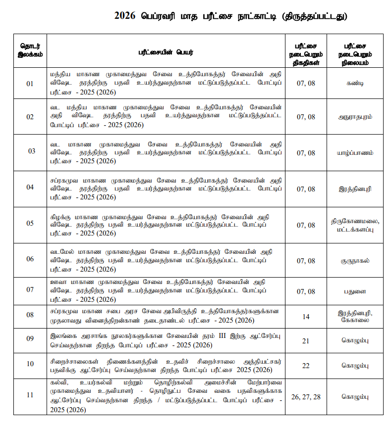 FEBRUARY EXAM CALENDAR 2026-NOTICE