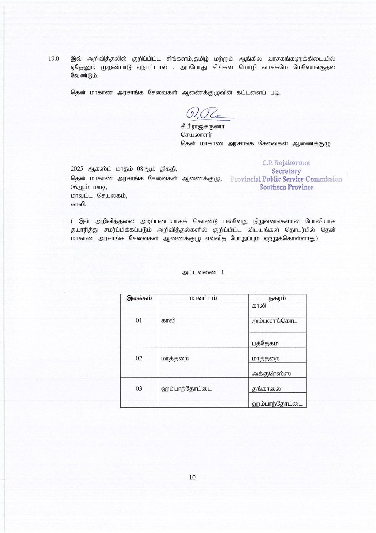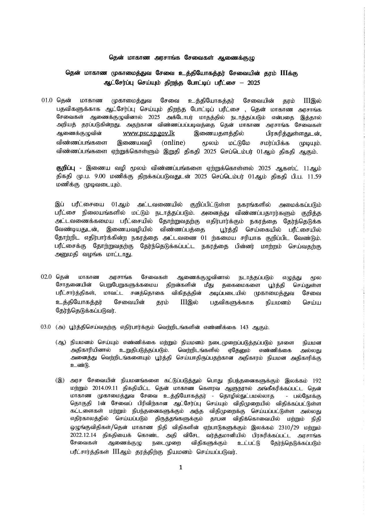 Open Competitive Examination for recruitment to Grade III of the Southern Provincial Management Service Officers’ Service – 2025