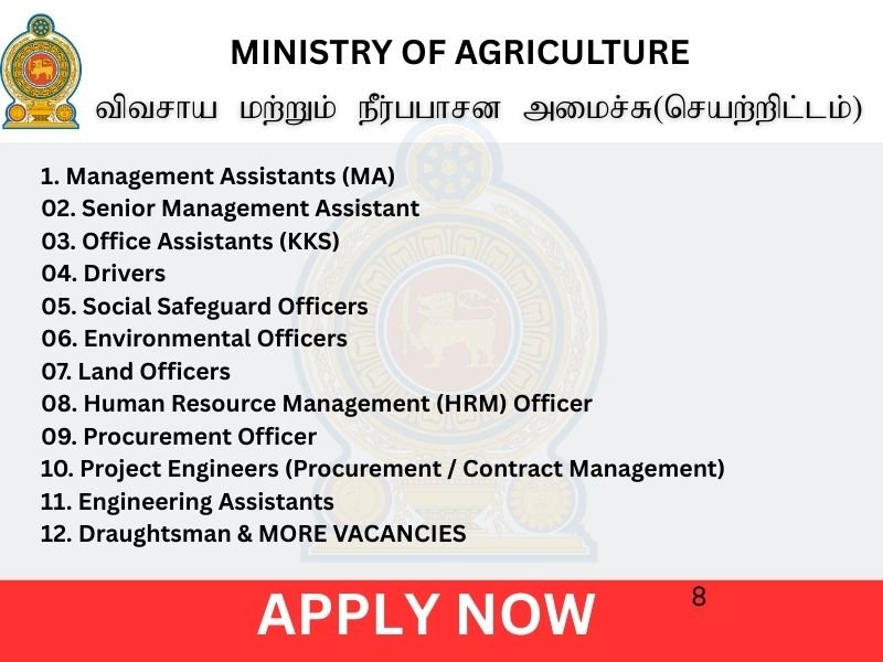 Office / Management Assistants , environmental officers,Drivers, Engineers, , Officers& more-Agriculture Ministry vacancies 2026