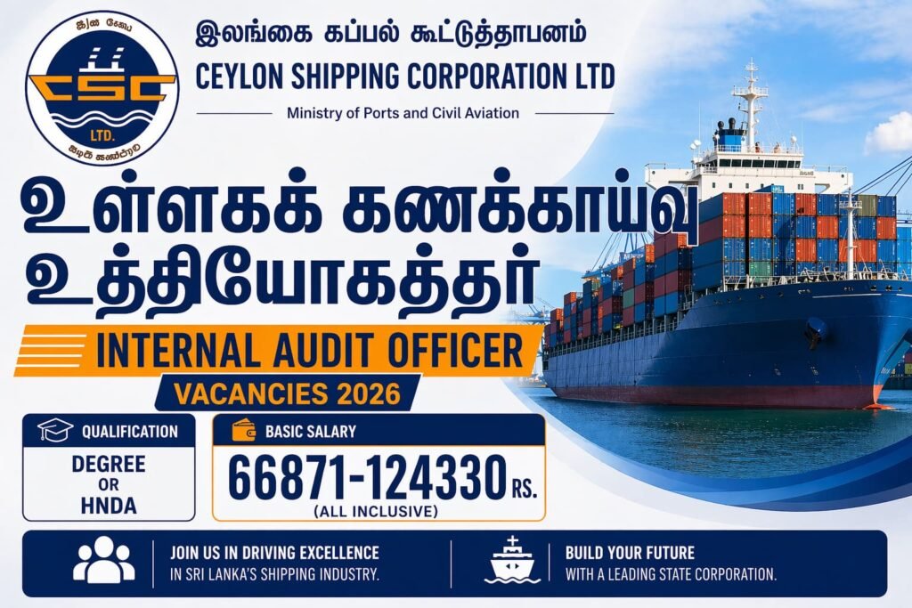 Internal Audit Officer Recruitment 2024 – Ceylon Shipping Corporation Ltd (CSCL)