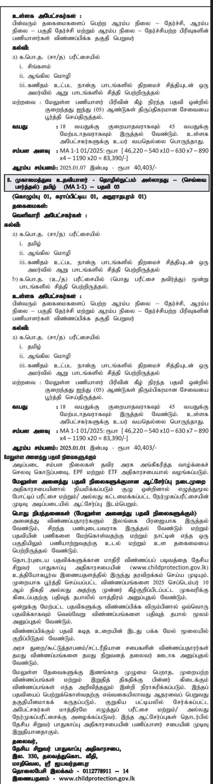 National Child Protection Authority vacancies 2025