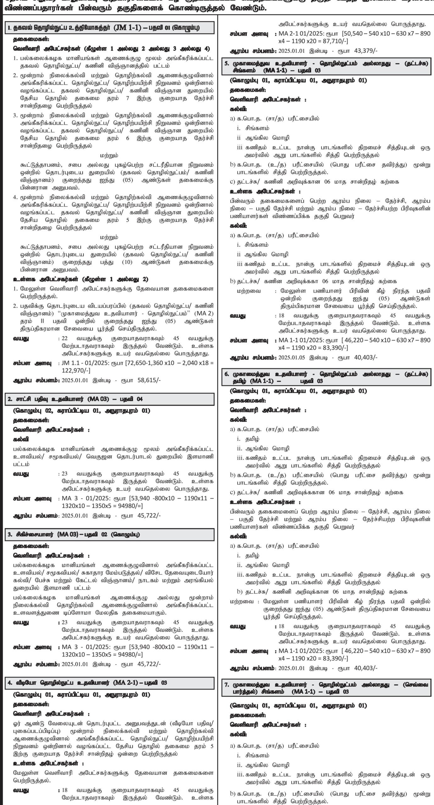 - MANAGEMENT ASSISTANT – NON TECHNOLOGICAL – (TYPE SETTING) SINHALA (MA 1-1)-