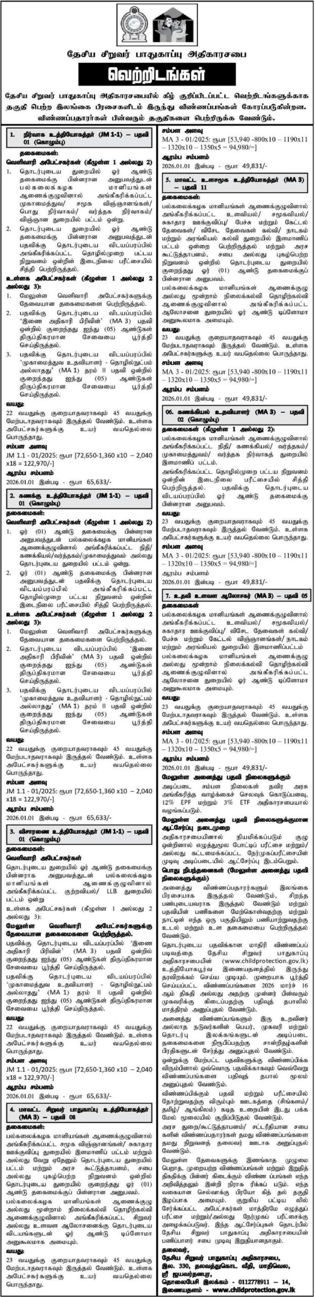 சம்பளம்: ரூபா 65,633/- (ஆரம்பம்)