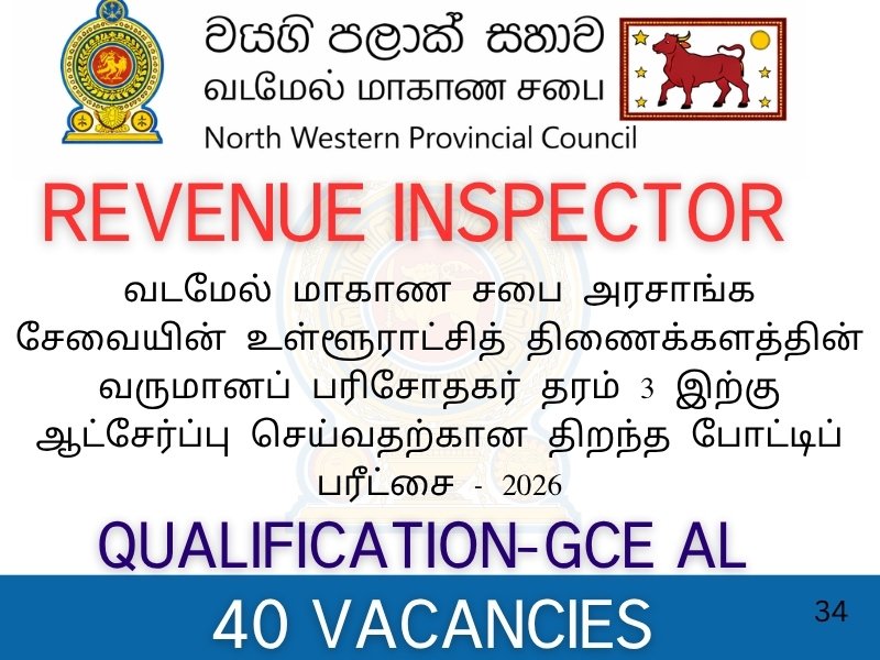 North Western Province Revenue Inspector Vacancies (Open Examination) 2026