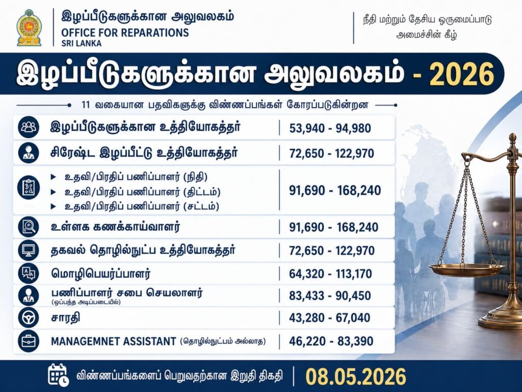 CLICK FULL DETAILS TO GET FULL INFORMATION AND APPLICATION FORM(முழு விபரம் பெற Full Deatils என்பதை கிளிக் செய்யவும் |සම්පූර්ණ විස්තර සඳහා “FULL JOB DETAILS” මත ක්ලික් කරන්න)