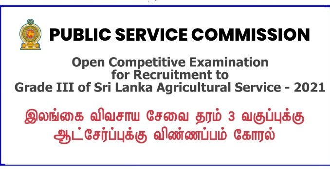 Open Competitive Examination for Recruitment to Grade III of Sri Lanka Agricultural Service – 2021