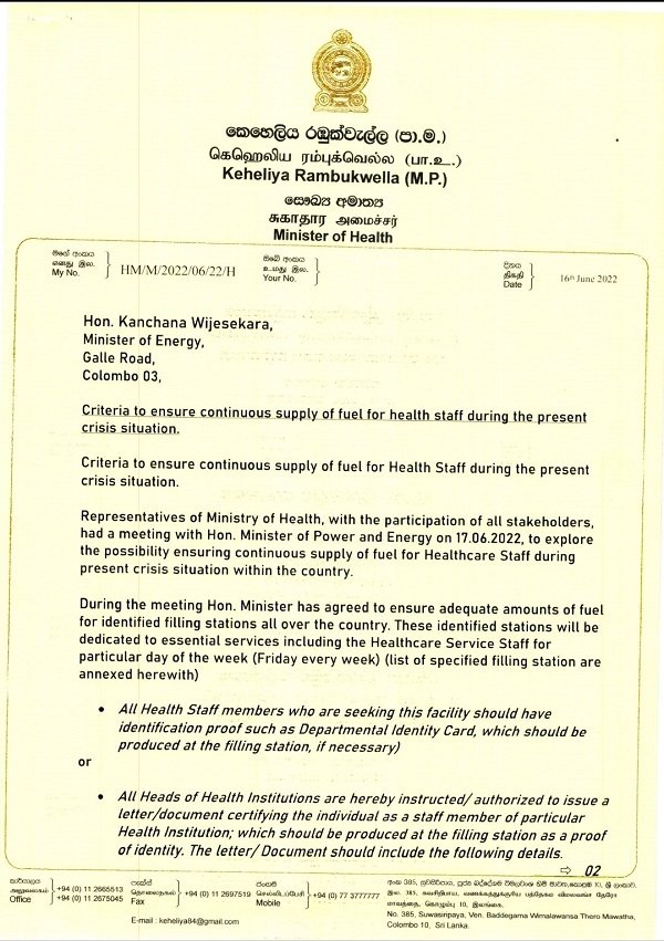 FUEL DISTRIBUTED STATIONS FOR HEALTH STAFF 2022