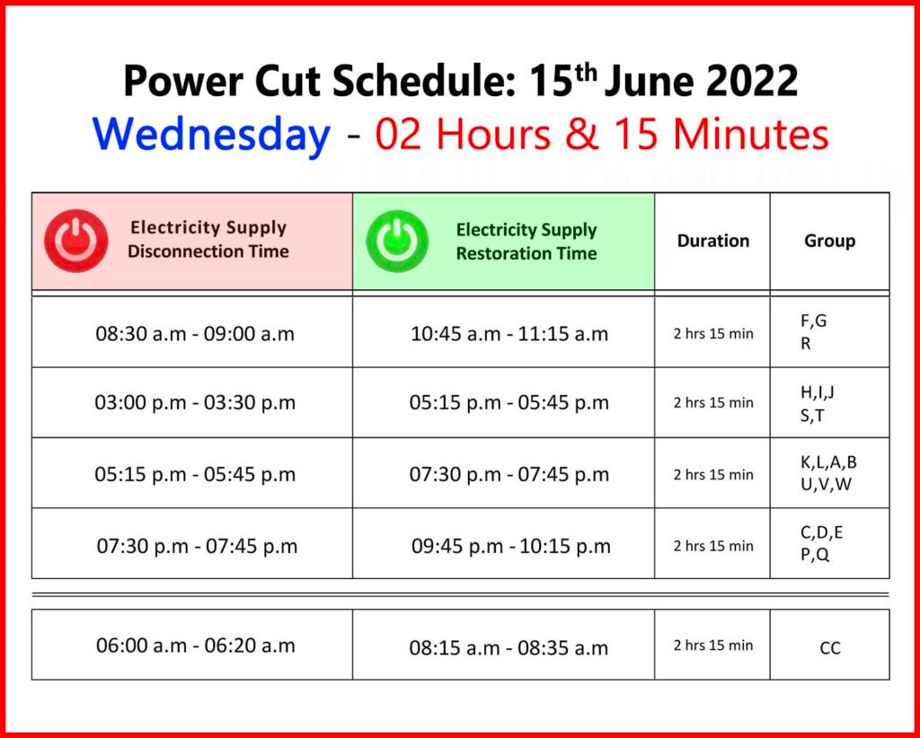 15 June 2022 Powercut Schedule