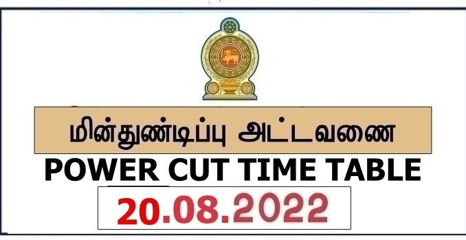 உங்கள் பிரதேசங்களில் எந்த நேரத்தில் மின் துண்டிப்பு ஏற்படும் என்பதற்கான அட்டவணையை அறிந்து கொள்ள கீழே கொடுக்கப்பட்டுள்ள CLICK HERE என்பதை கிளிக் செய்யவும்