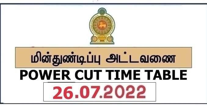 உங்கள் பிரதேசங்களில் எந்த நேரத்தில் மின் துண்டிப்பு ஏற்படும் என்பதற்கான அட்டவணையை அறிந்து கொள்ள கீழே கொடுக்கப்பட்டுள்ள CLICK HERE என்பதை கிளிக் செய்யவும்