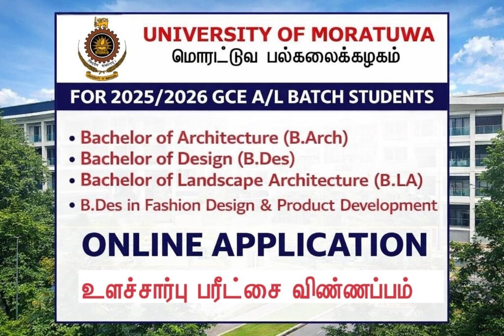 Applications are invited for the Aptitude exam to Select Candidates for the following Degree Programme Conducted by the University of Moratuwa 2026